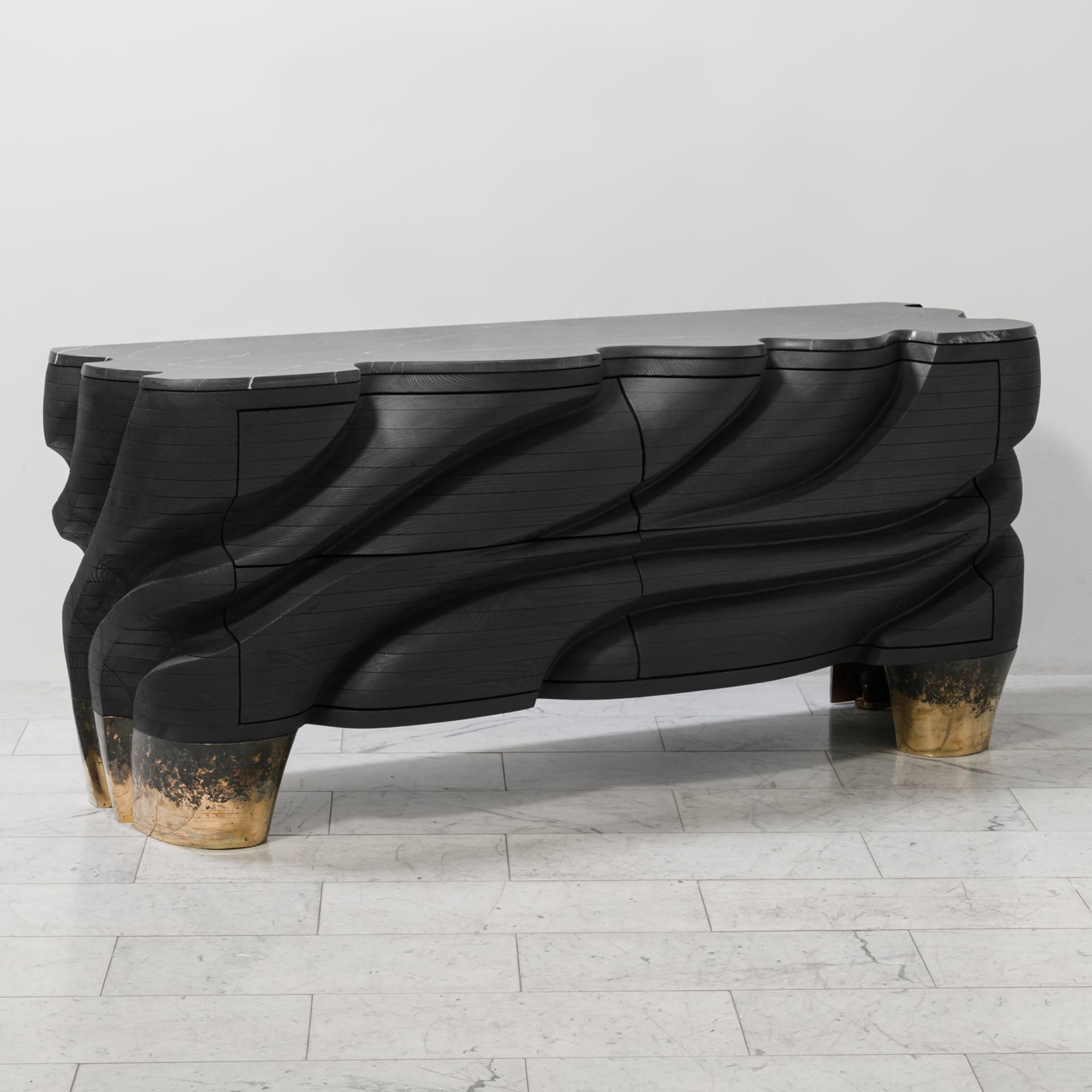 Todd Merrill Studio has represented Markus Haase since 2013. Influenced by classic and modern European sculptors, Haase masterfully combines several types of stone and wood into one piece, laminating the materials together and carving straight through them.