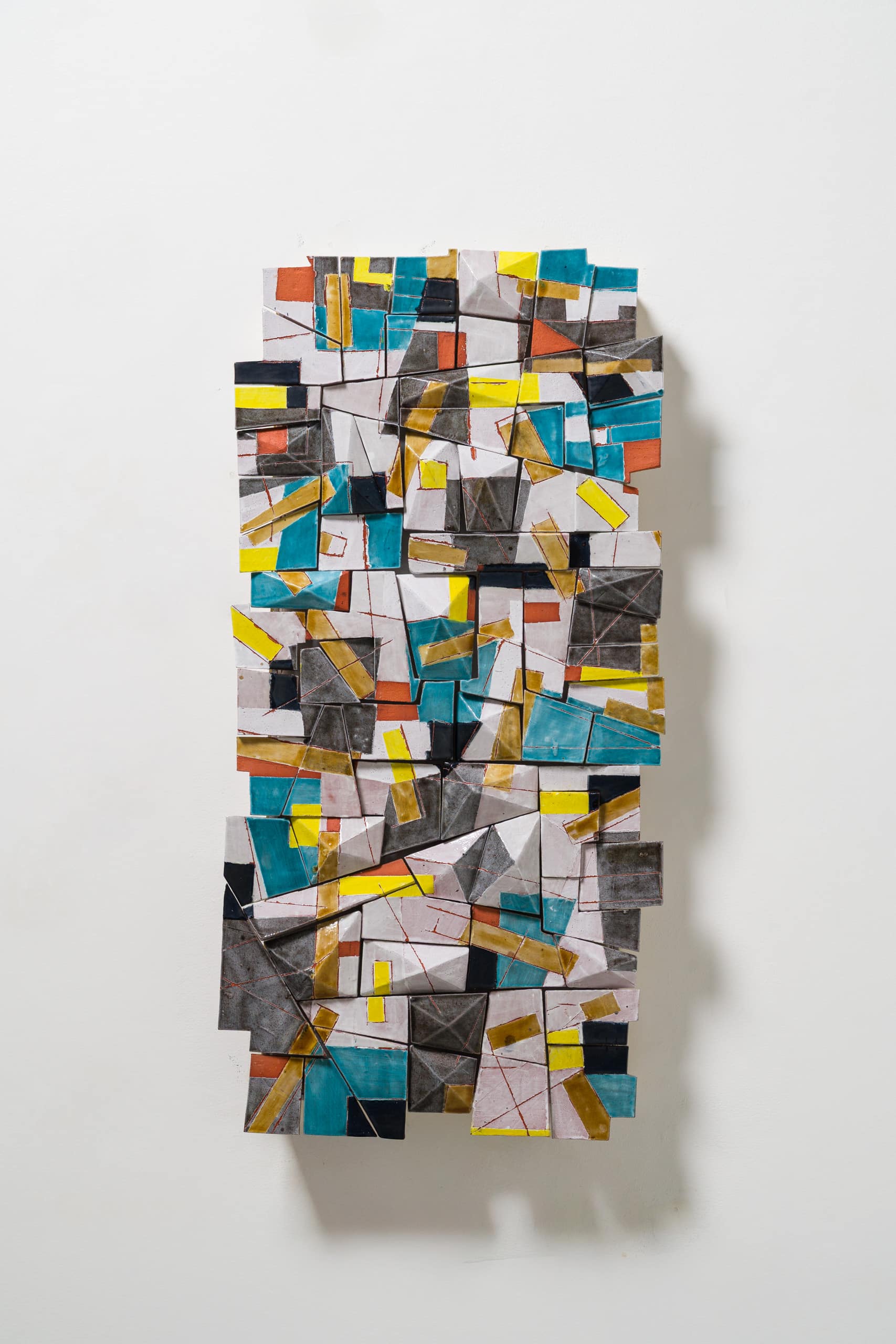 With the Geo series, Russell has ventured into the world of LED lighting—marking a new technical challenge in his creative process. Drawing inspiration from his earlier work in ceramic lighting, Russell sought to create a piece that would engage with light in a distinct way. As he explains, “Light brings out the beauty of glazes, and with Geo, I wanted to explore how this interaction could transcend the traditional table lamp form.”The result is a work of dynamic contrast: Geo Light functions as both a sculptural object and a functional source of illumination. When lit, the tiles glow, highlighting the rich texture and color of each glaze. But it is equally compelling when unlit, as it transforms into a ceramic painting, capturing the viewer’s attention with its intricate geometry and refined craftsmanship.