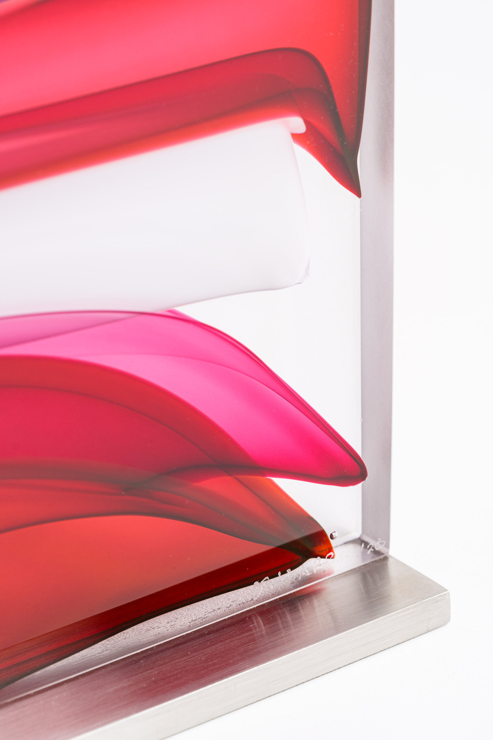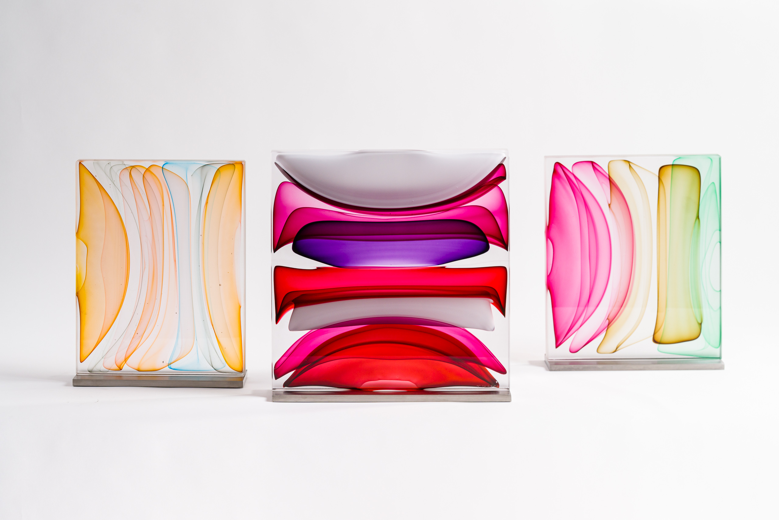 For Harris, his work is a relentless examination of the purity of color and the limitless modulations that can evoke emotional resonance through visual contrasts. Notably, 20th Century Modernist painters like Mark Rothko, Kenneth Nolan, and Ellsworth Kelly have been a source of inspiration, as has the extensive color theory of Joseph Albers. Glass has been a near lifelong obsession for the artist. A chance encounter with glass blowing at a summer arts camp captivated him well before he reached his teens. Though he pursued a degree in literature at Brown University, the schoolโs connection with the Rhode Island School of Design was a deliberate draw, granting him access and opportunity to pursue his devotion to the craft. When Harris moved to New York City in the late 1990s, he was suddenly thrust into a community of artists and makers whose kinship helped develop his own unique design aesthetic.