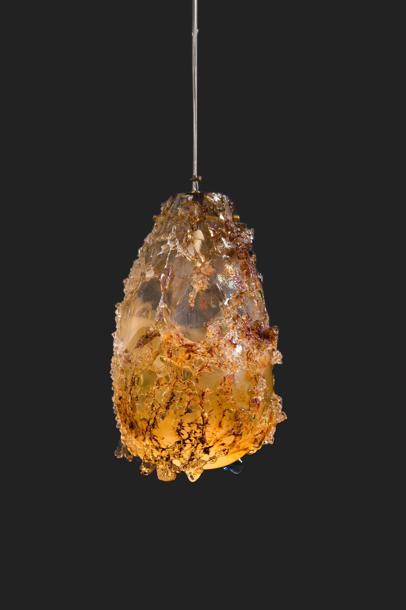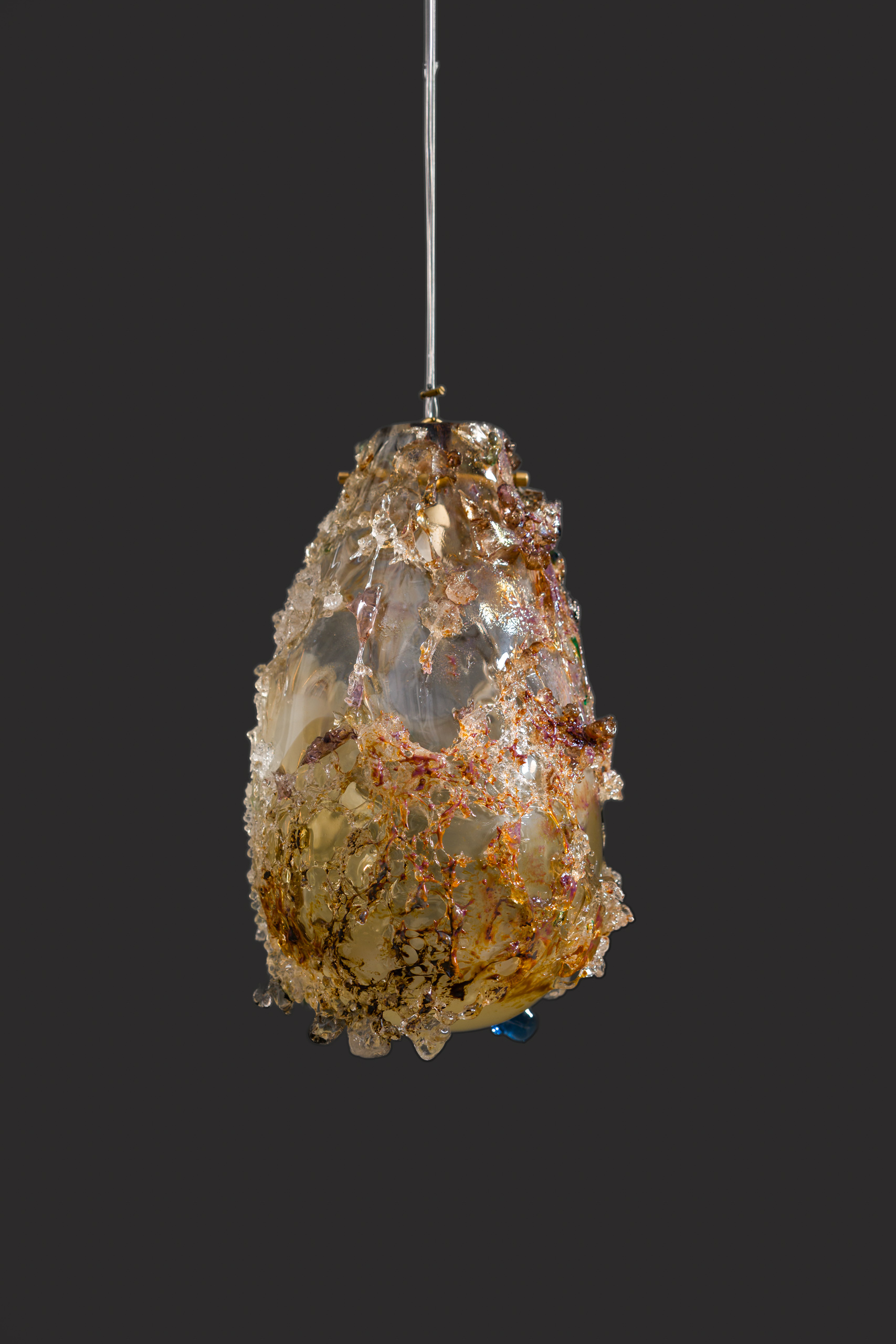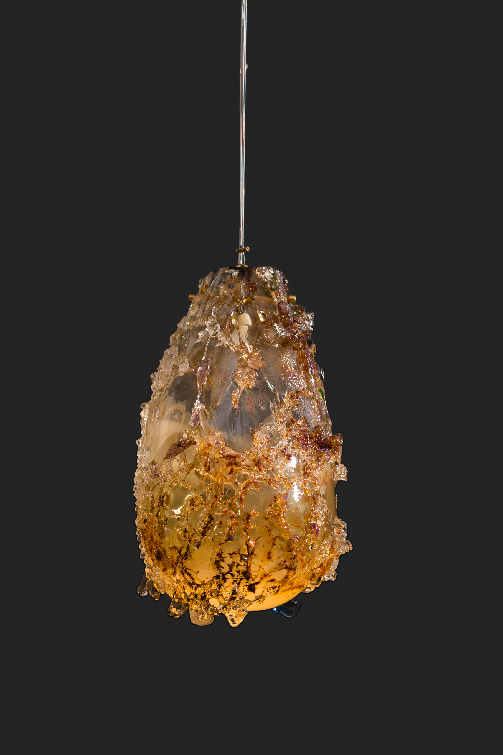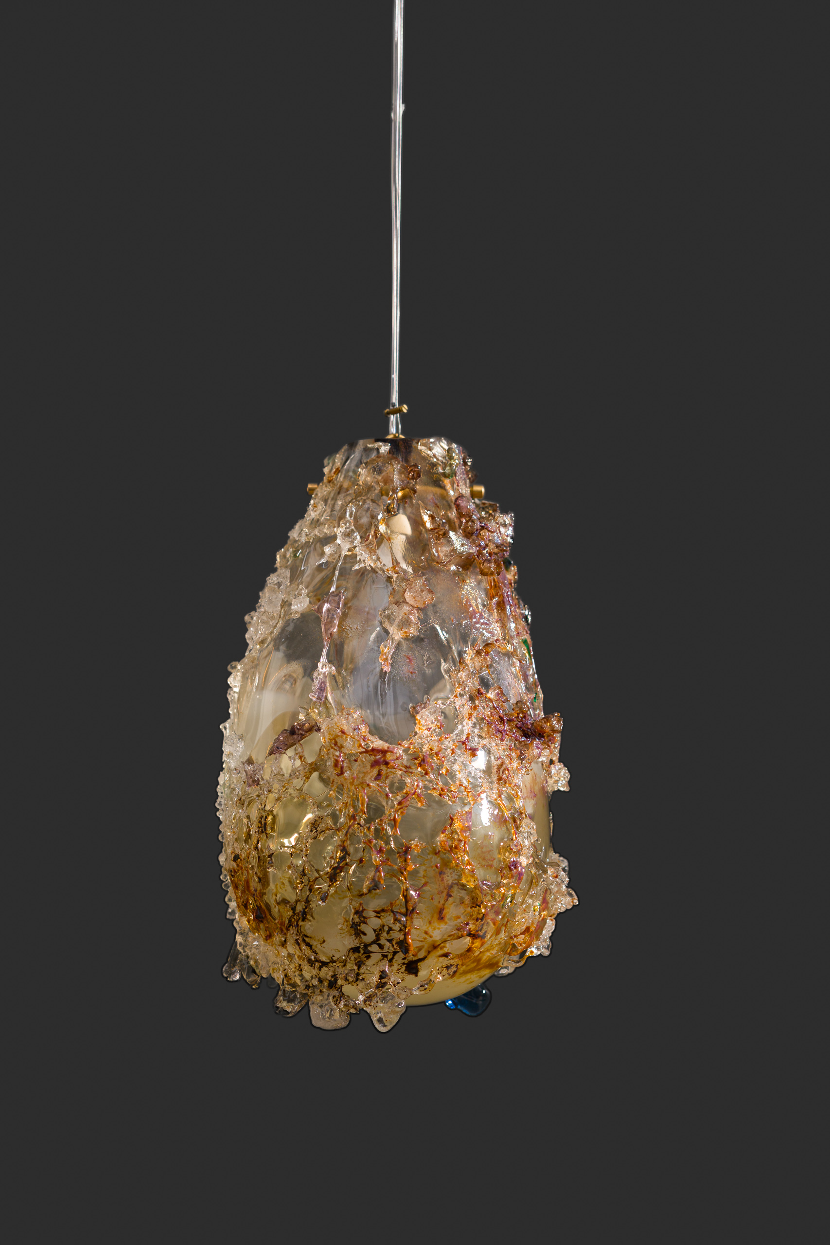 “Glass is transparent and becomes alive with light. I have been thinking about lamps and what they should look like for some time now,” says contemporary artist and designer Maarten Vrolijk, reflecting on his first venture into glass lighting designs. Vrolijkโs exploration into light continues his broader practice, where his diverse mediumsโranging from glass to ceramics, painting, and textilesโare all united by nature as a common source of inspiration. The result is a design that evokes an organic world, one that feels as though it could have emerged directly from nature itself.