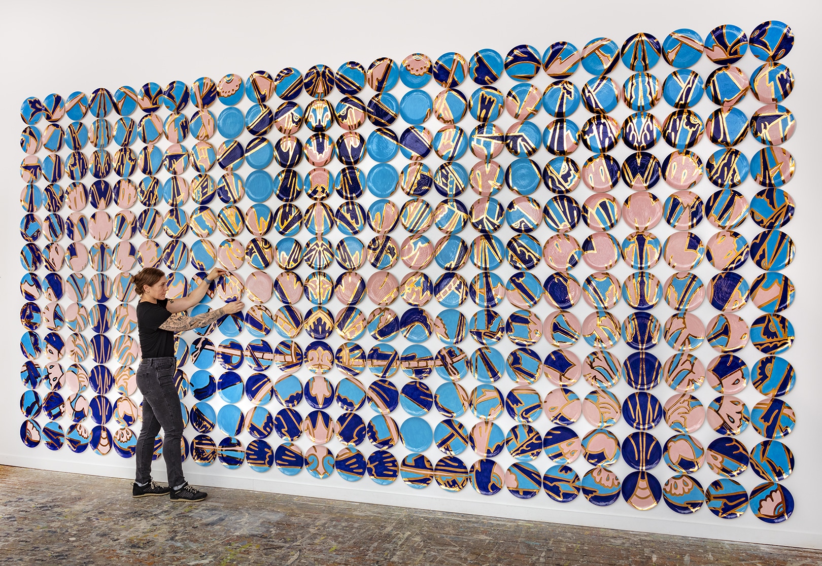 Truth, Beauty, and Power, an extraordinary 20-foot-wide ceramic plate installation by American artist Molly Hatch. At 10 feet in height, the work transforms historical ornament into a contemporary feminist retelling.