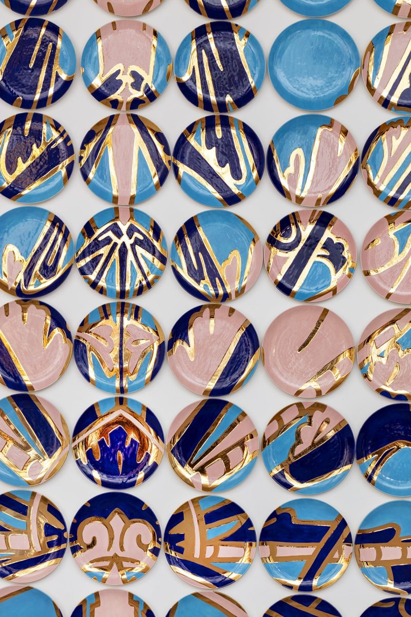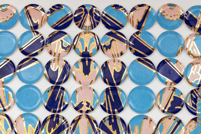 Inspired by a Christopher Dresser vessel, also referenced in Hatch’s earlier pieces Power and Ducere, (her monumental installation at the Montreal Museum of Fine Arts,) the installation examines gold leaf, decorative language, and scale as symbols of authority and cultural inheritance. By reinterpreting these symbols through her own hand, Hatch positions herself within a lineage from which women were historically excluded, reclaiming a place of authorship and power in the visual narrative. This museum-level work offers collectors the rare opportunity to acquire a Hatch installation of this magnitude without commission. Hatch’s work resides in major institutions including the High Museum of Art (Atlanta), the Newark Museum of Art, the Montreal Museum of Fine Arts, and six Tiffany & Co. Blue Box Café locations worldwide.