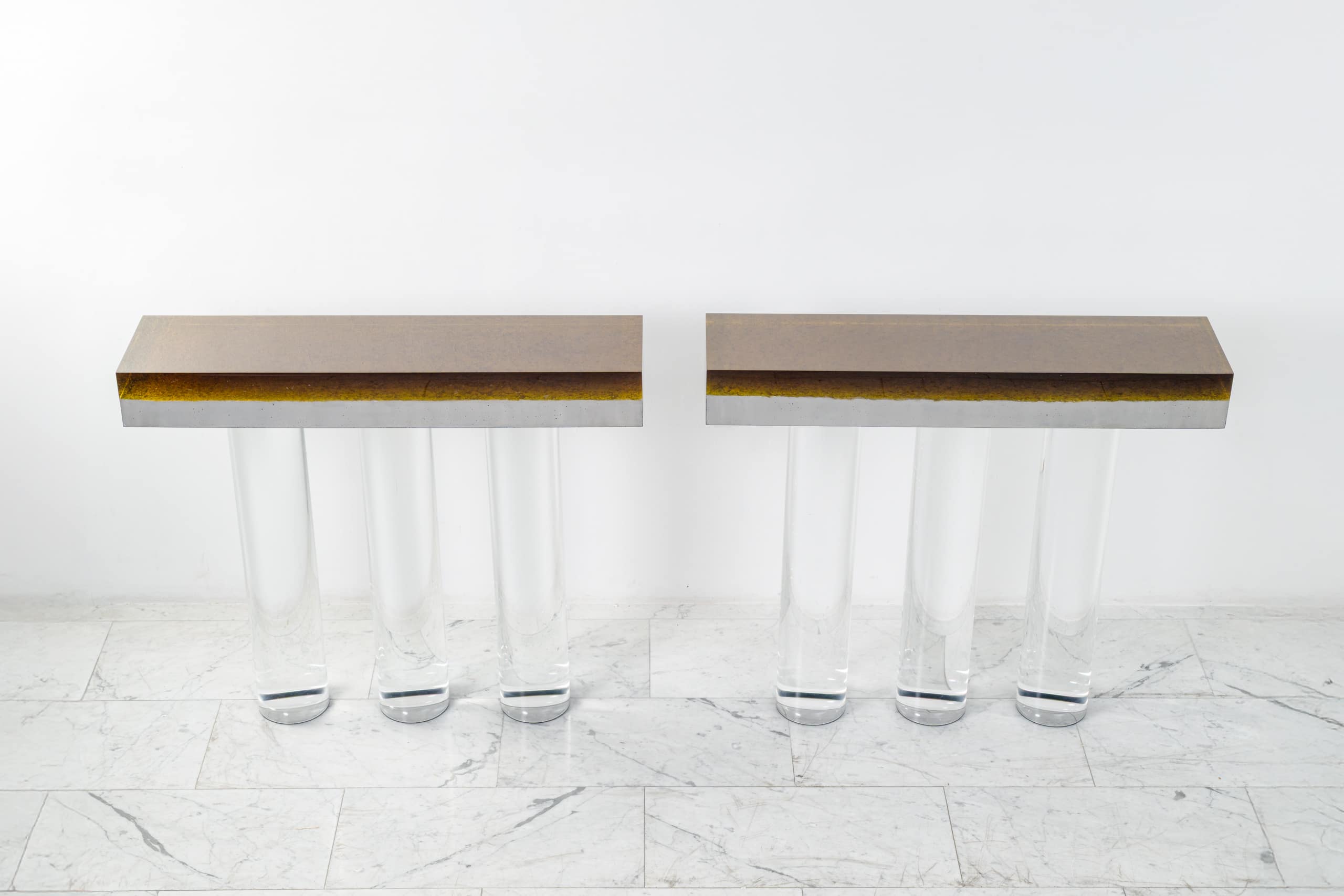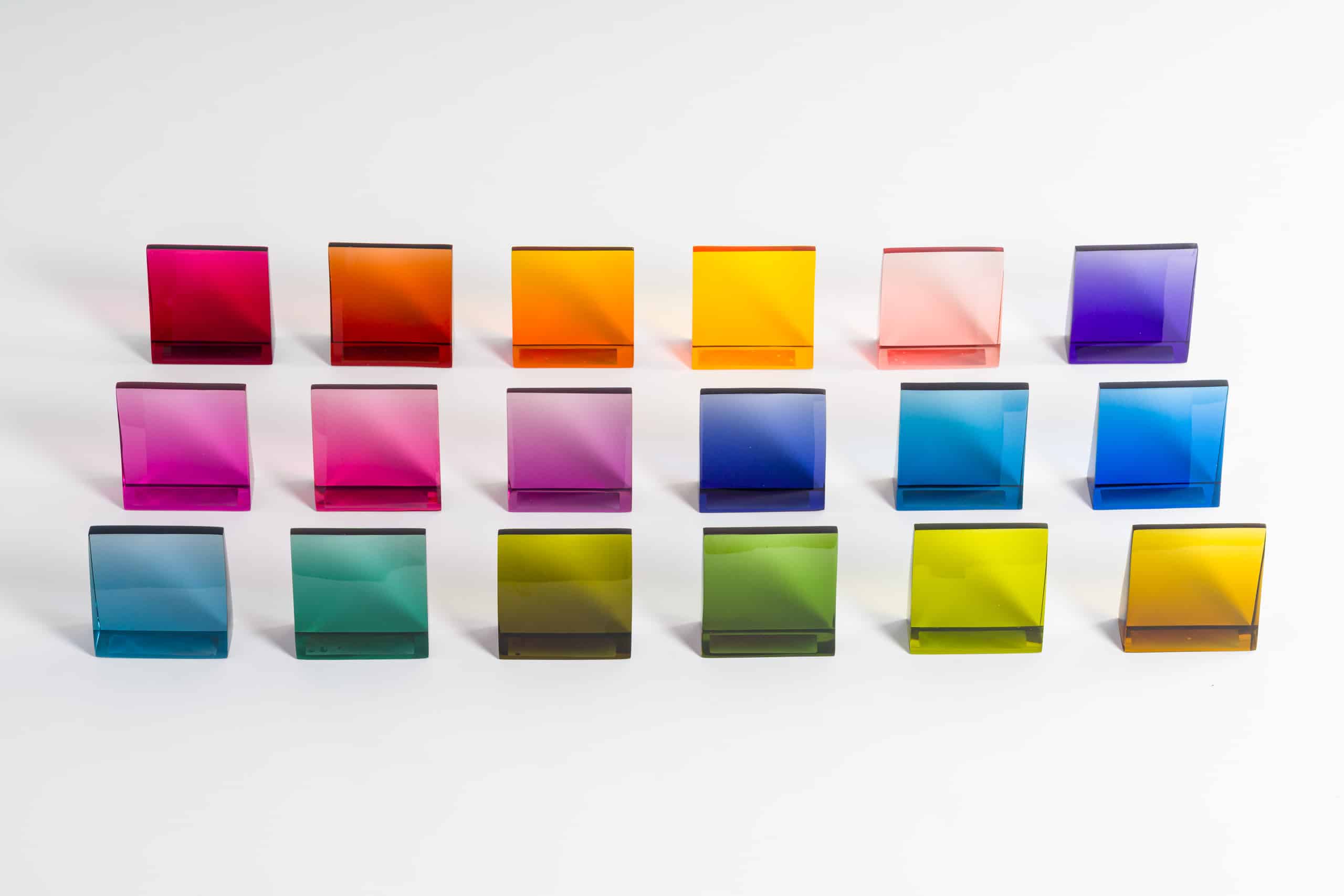Draga and Aurel, founded in 2007 in the town of Como, Italy, is a multi-disciplinary design studio specializing in unique works that blend colored resins, concrete, bronze, and brass. Inspired by Minimalismโs simplified volumes, retro-futuristic experimentation of Space Age design, and the eye-bending patterns of Optical Art, partners Draga Obradovic and Aurel Basedow have brilliantly synthesized these varied influences to build an all-new collection called โTransparency Mattersโ, entirely fabricated by hand in their Como atelier.
