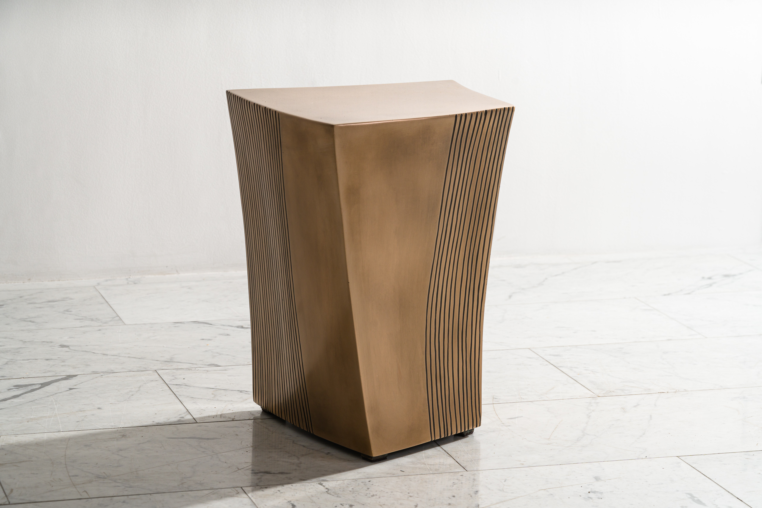 Inspired by Constructivism and Modernist cantilevered houses, Gary Magakis channels architectural elements in design while tapering each of his forms uniquely. Though each of the side table’s sections appear sharp at first glance, they are actually gracefully curvilinear. The Mesa side tables are a new series, whose forms are inspired by its namesake, visible in the table’s organically sloping sides, sleek flattened surface, and unexpected curves that present a unique vista from every angle.